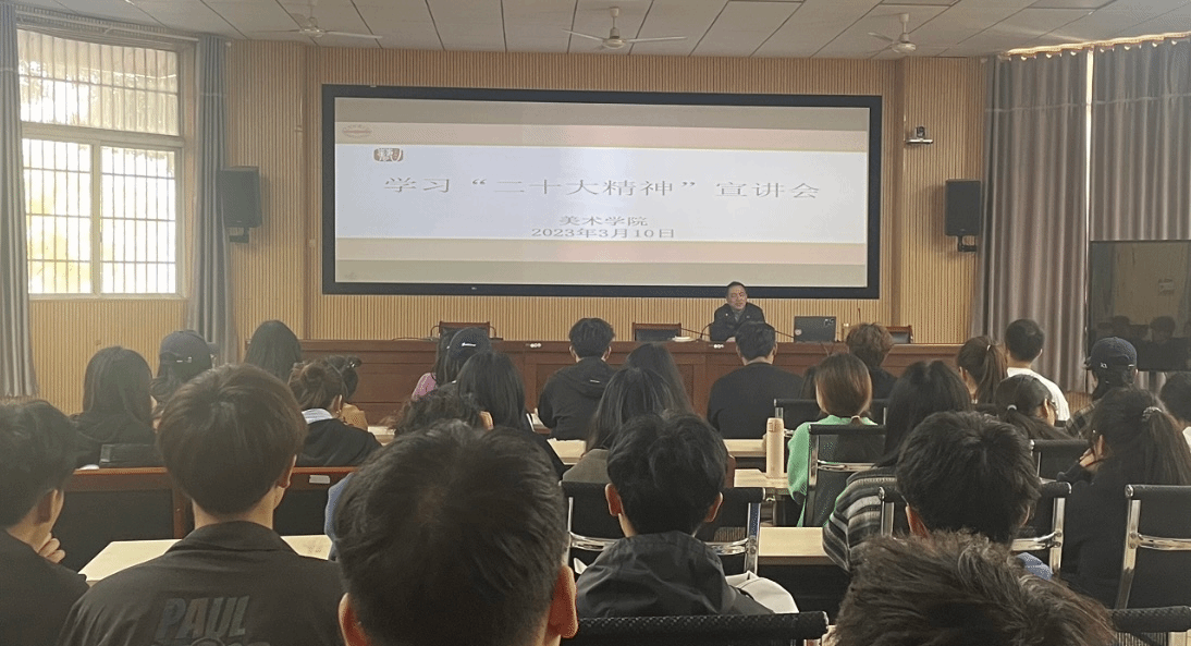 3月10日,2138CC太阳集团在学院学术报告厅开展党的二十大精神宣讲会,校“青年讲师团”成员、学院党委副书记金忠良向“青马班”学员、学生会成员面对面开展党的二十大精神宣讲交流活动,100余名青年学生参加了宣讲会。