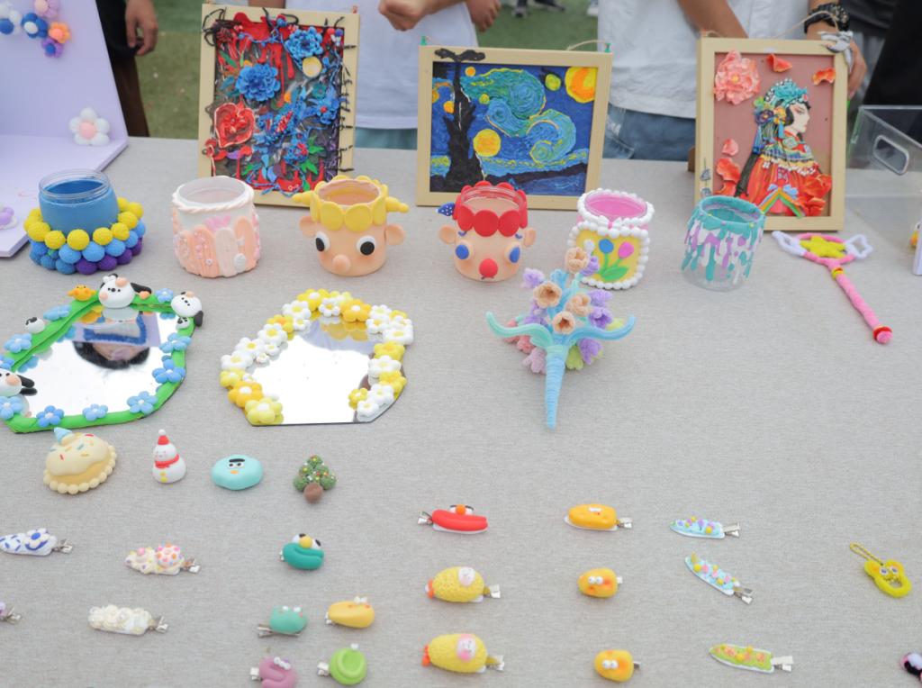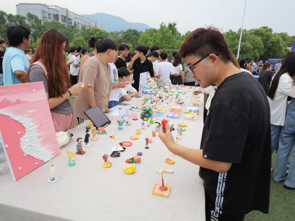 本次活动设立了石塑黏土艺术展示区、精品义卖区和趣味体验区三处活动区域,共展出黏土作品100余件。“希望同学们能够了解黏土艺术,通过亲自体验感受黏土的乐趣,在提高动手能力的同时释放压力,愉悦身心。”活动负责人之一、动画专业2021级的汪润表示。