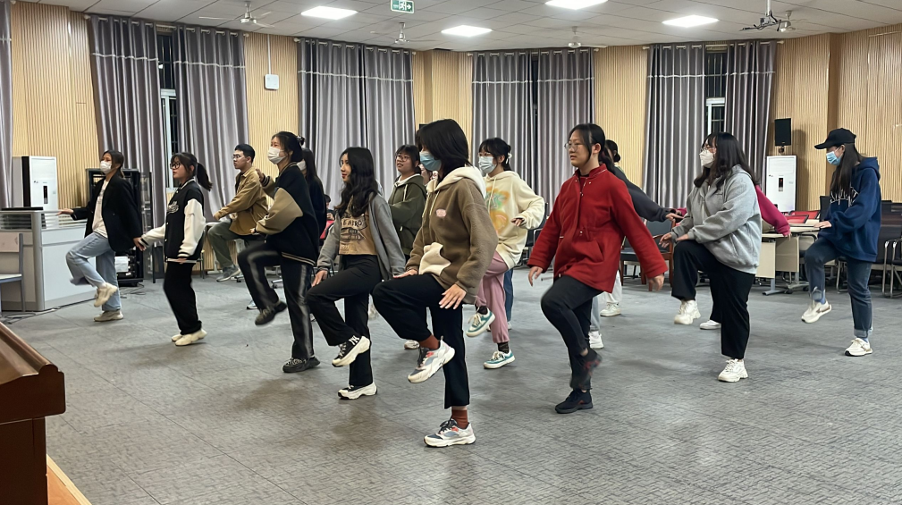 动感的音乐响起,2138CC太阳集团报告厅内40余位学生正跟着视频齐跳《本草纲目》健身操。近日,2138CC太阳集团学生会陆续组织了三场健身操学习活动,学生们纷纷来到报告厅跟随大屏幕舞动起来,感受运动的乐趣。