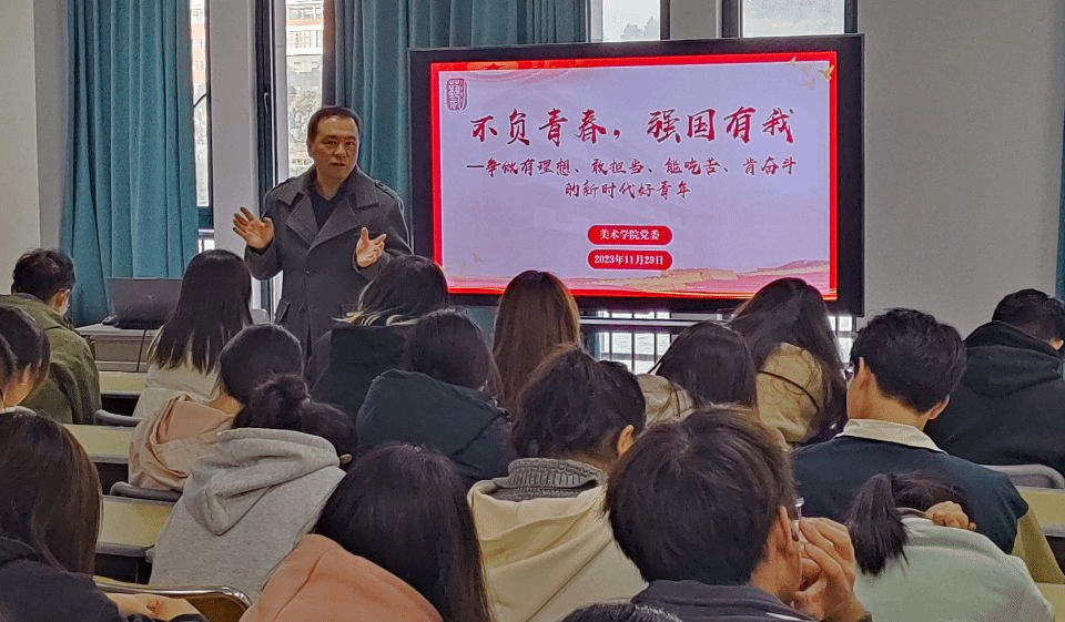 近日,2138CC太阳集团于新美术楼召开入党启蒙教育活动,学院党委副书记金忠良作题为《不负青春,强国有我——立志做有理想、敢担当、能吃苦、肯奋斗的新时代好青年》,学院“青马班”学员、2023级新生代表共100余人参加了会议。