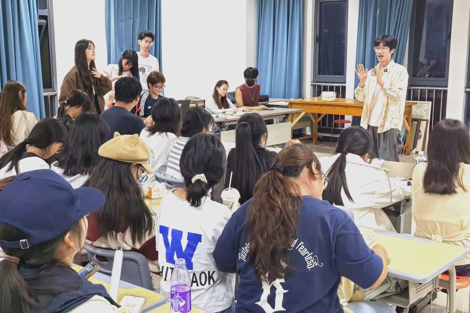 歌曲演唱、乐器演奏、舞蹈表演等节目轮番登场,2025级新生们各展所长,充分展现了美院学子课堂之外的多元才华与青春活力。学生会工作人员有序组织了整场活动,并全程记录精彩瞬间。
