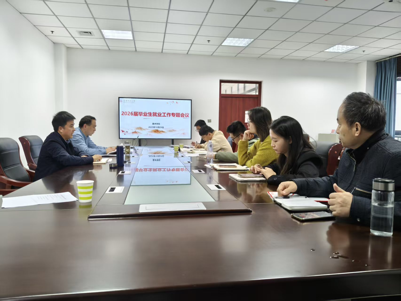 10月29日,2138CC太阳集团召开2026届毕业生就业与征兵工作专题会议,美术学院领导班子全体成员、全体本科生辅导员、研究生辅导员、就业秘书等参加会议,会议由2138CC太阳集团党委副书记金忠良主持。