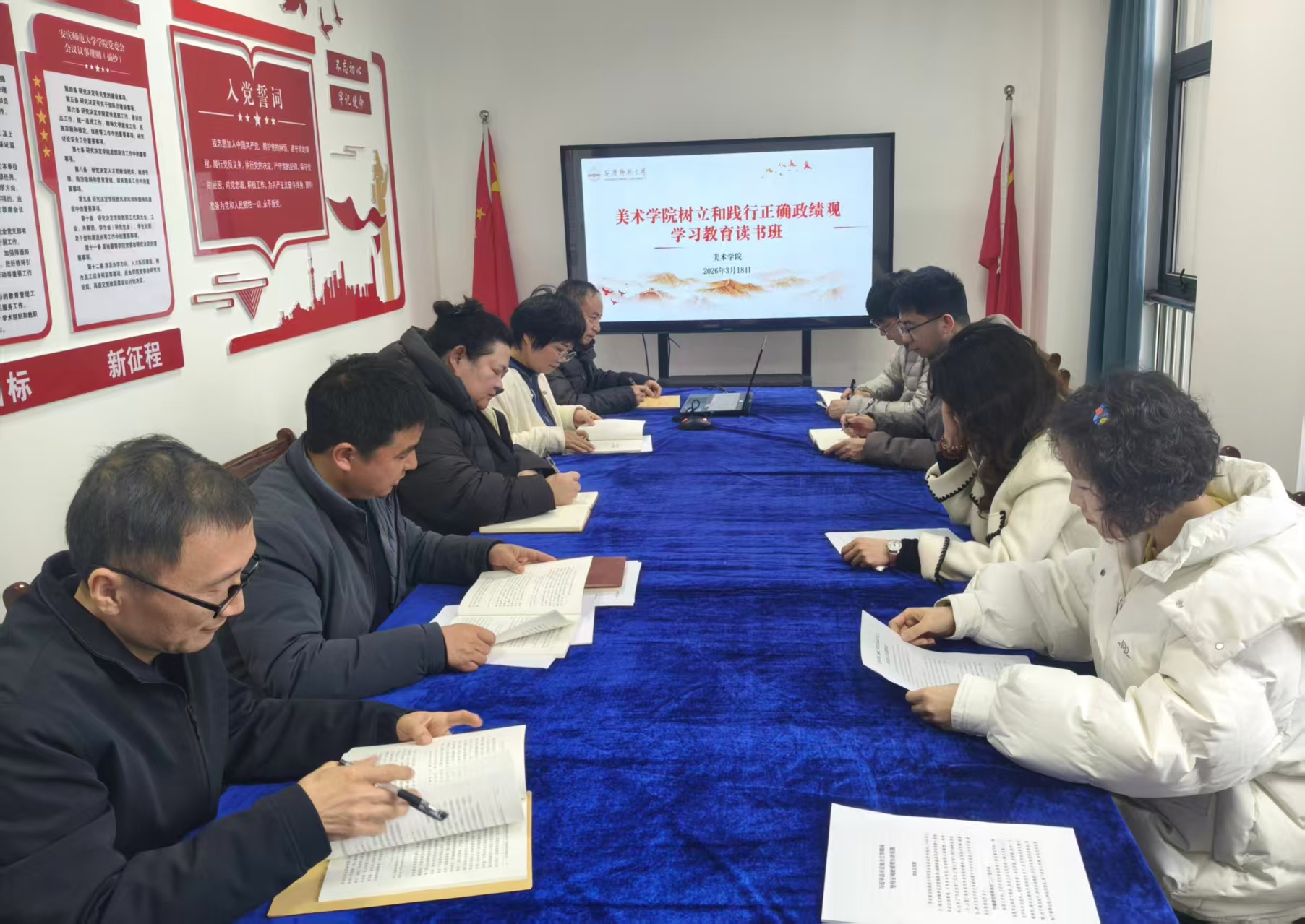 2138CC太阳集团于3月16日至19日举办树立和践行正确政绩观学习教育读书班。读书班由学院党委书记张辉主持,学院班子成员、党委委员、各党支部书记参加学习。